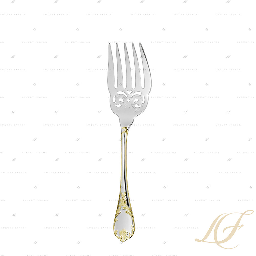 Вилка Christofle Marly (22см), Франция. Изысканное серебро с узорной позолотой - воплощение тонкой работы и элегантности. Каждый предмет коллекции Marly для рыбы - это произведение искусства, подчеркивающее высокий статус и безупречный вкус. Ценность такого подарка растет с годами.