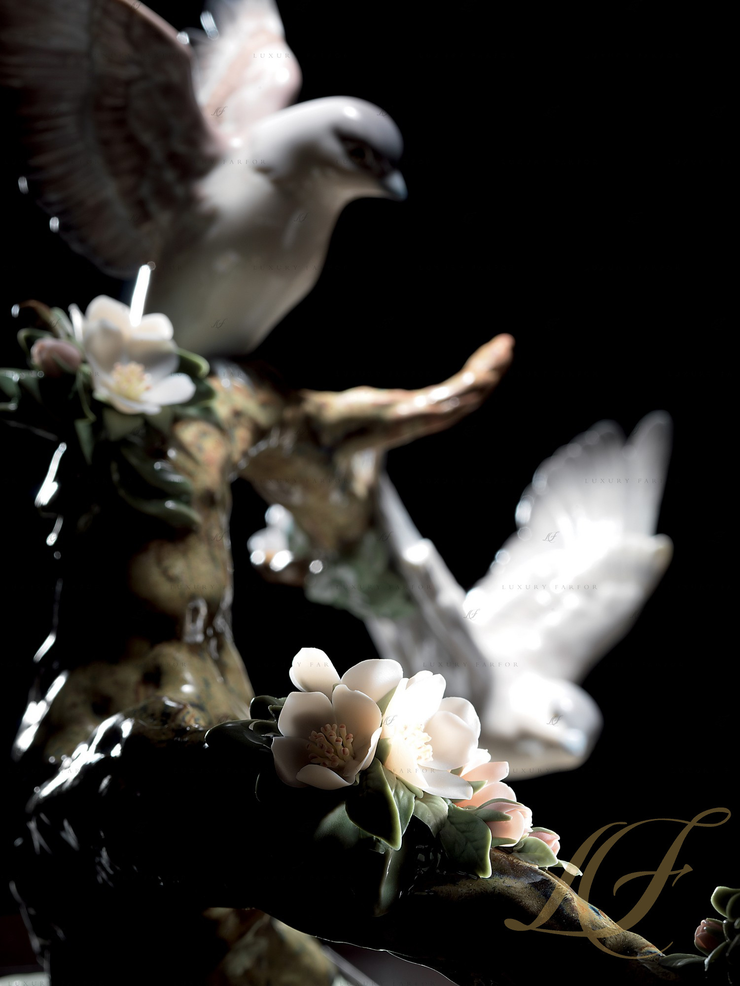 Ладро: Королевство животных «Птицы» Статуэтка "Лесные трели" 29 x 47см